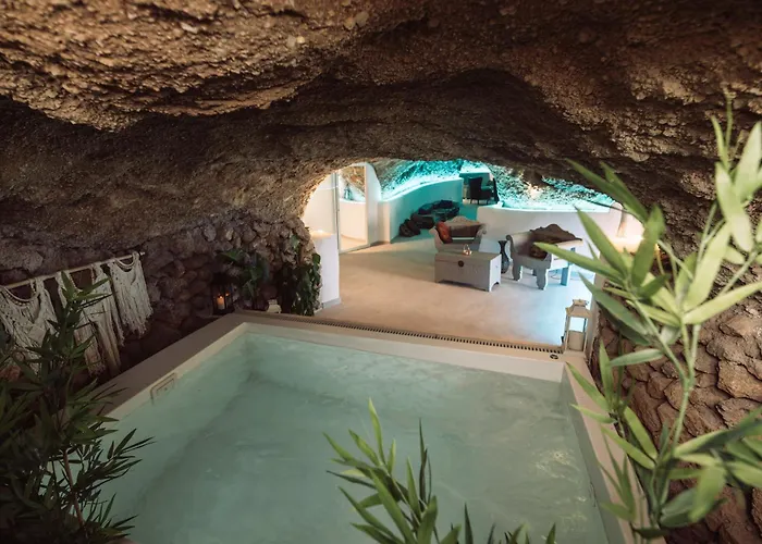 De gesitueerde in San Miguel de Abona Cueva Thalia - Luxury Cave With Heated Indoor Pool And Garden Villa San Miguel de Abona ligt binnen 10 minuten met de auto vanaf het Cho Pancho gebied en heeft een privézwembad, een dompelbad, een bubbelbad en een overdekt zwembad om in te ontspannen.